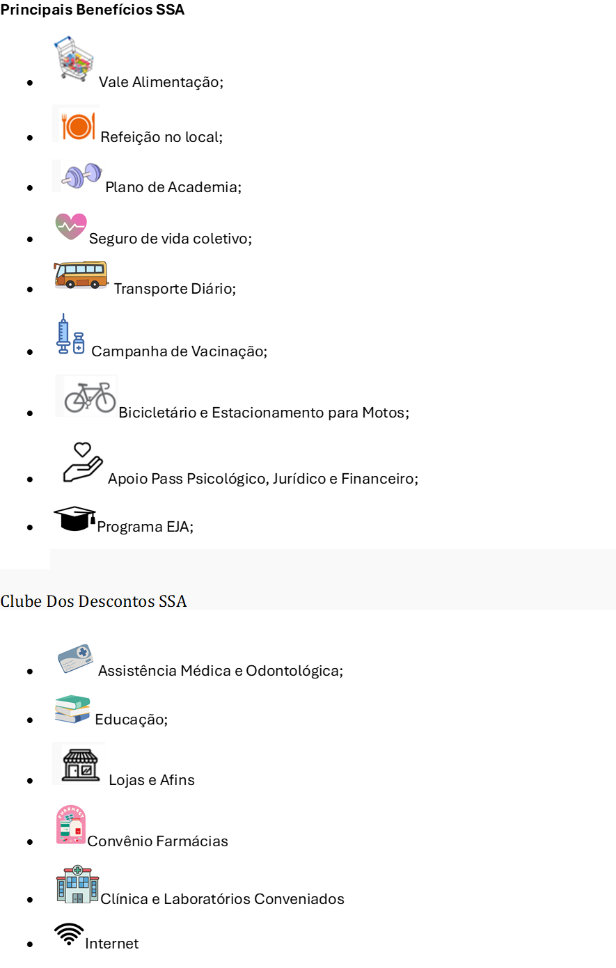 Se você é um(a) profissional determinado, possui senso de propriedade e que busca por desenvolvimento profissional, a SSA é o seu lugar!