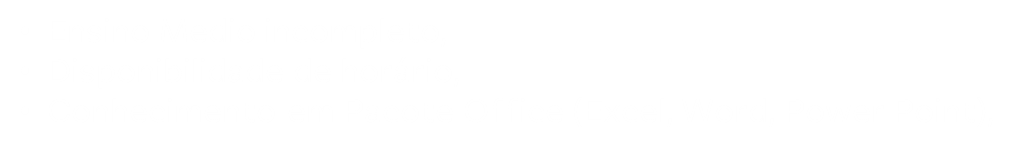• Conhecimento em Pacote Office (Excel, Word, Power Point);![]()