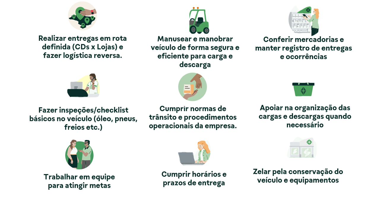 · Realizar entregas em rota definida (CDs X Lojas) e fazer logística reversa;