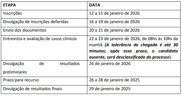 a) As inscrições serão realizadas no período de 12 a 15 de janeiro de 2026, exclusivamente pelo site: https://unimedfortaleza.gupy.io/;